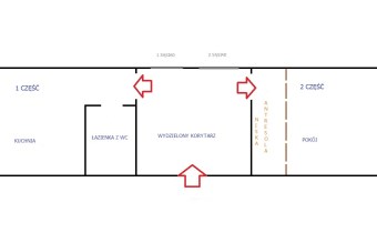 -Lokal składa się z dwóch części (10,60 m2 i 10 m2) położonych naprzeciwko siebie.